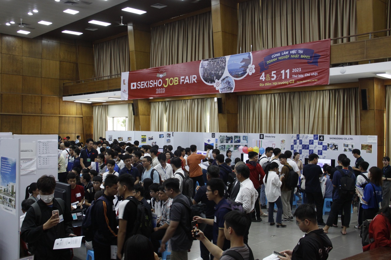 (VOVWORLD) - 既にお伝えしましたように、4日と5日の両日、ハノイ工科大学で、優秀なベトナム人大卒人材の採用を行いたい日系企業と日系企業で働きたいベトナム人との架け橋となる「SEKISHO JOB FAIR 2023」が開催されました。今年で10回目となったこのイベントは、総合商社の関彰商事株式会社のグループ会社「株式会社セキショウキャリアプラス」とハノイ工科大学の共催によるもので、日越外交関係樹立50周年を記念する活動の一環です。この写真記事で、それをご紹介します。