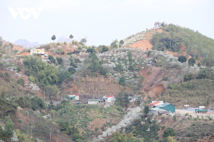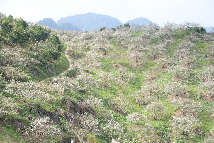 (VOVWORLD) - 今、北部山岳地帯ソンラ省はスモモの旬を迎えています。この時期に、ソンラ省に足を運ぶ観光客は北西部の美しい風景を眺めながら、新鮮な空気を味わい、スモモの花と写真を撮ることができます。この写真記事で、ソンラ省のスモモの花の美しさをご紹介します。