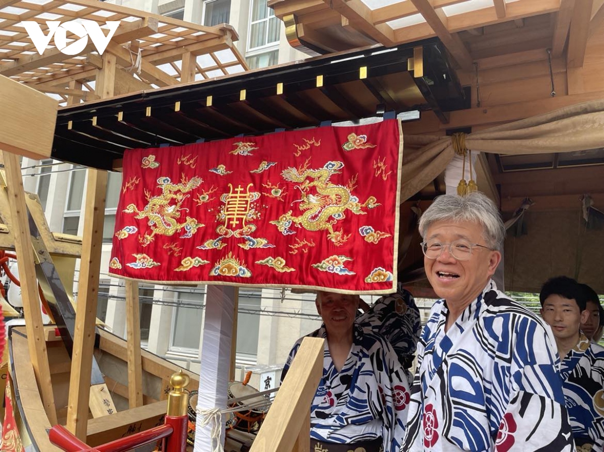 | 宮廷刺しゅう職人ブー・バン・ゾイ氏により製作された軒幕は大船鉾の装飾品として使用された |