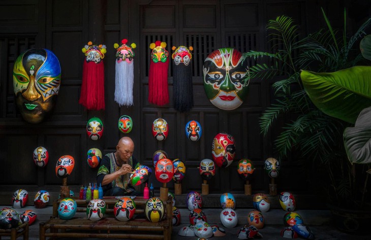 | ベトナム伝統的なトゥオン(Tuong)芸術の面を作る |