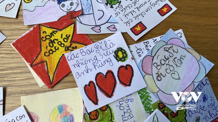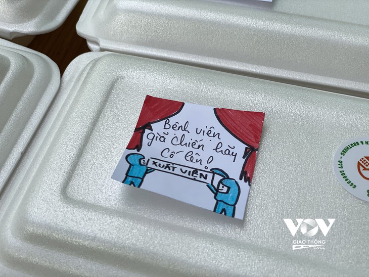 (VOVWORLD) - この間、ホーチミン市内のトゥドゥック市アンフ町の「ビンカイン(Binh Khanh)」というマンションに住んでいる子供たちは、両親とともに新型コロナウイルス対応活動に積極的に参加しています。子どもたちは、小さなステッカーを描き、共同体に励ましの言葉を送っています。それらのステッカーは最前線に立ったいる医療従事者に送られるお弁当に貼り付けます。この写真記事で、それをご紹介します。