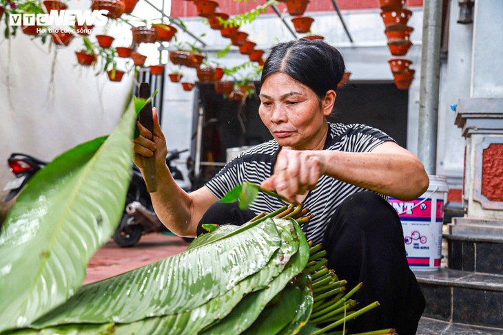 | 毎月旧暦15日やテトの時、注文が急増、住民はバインチュンづくりで忙しい |