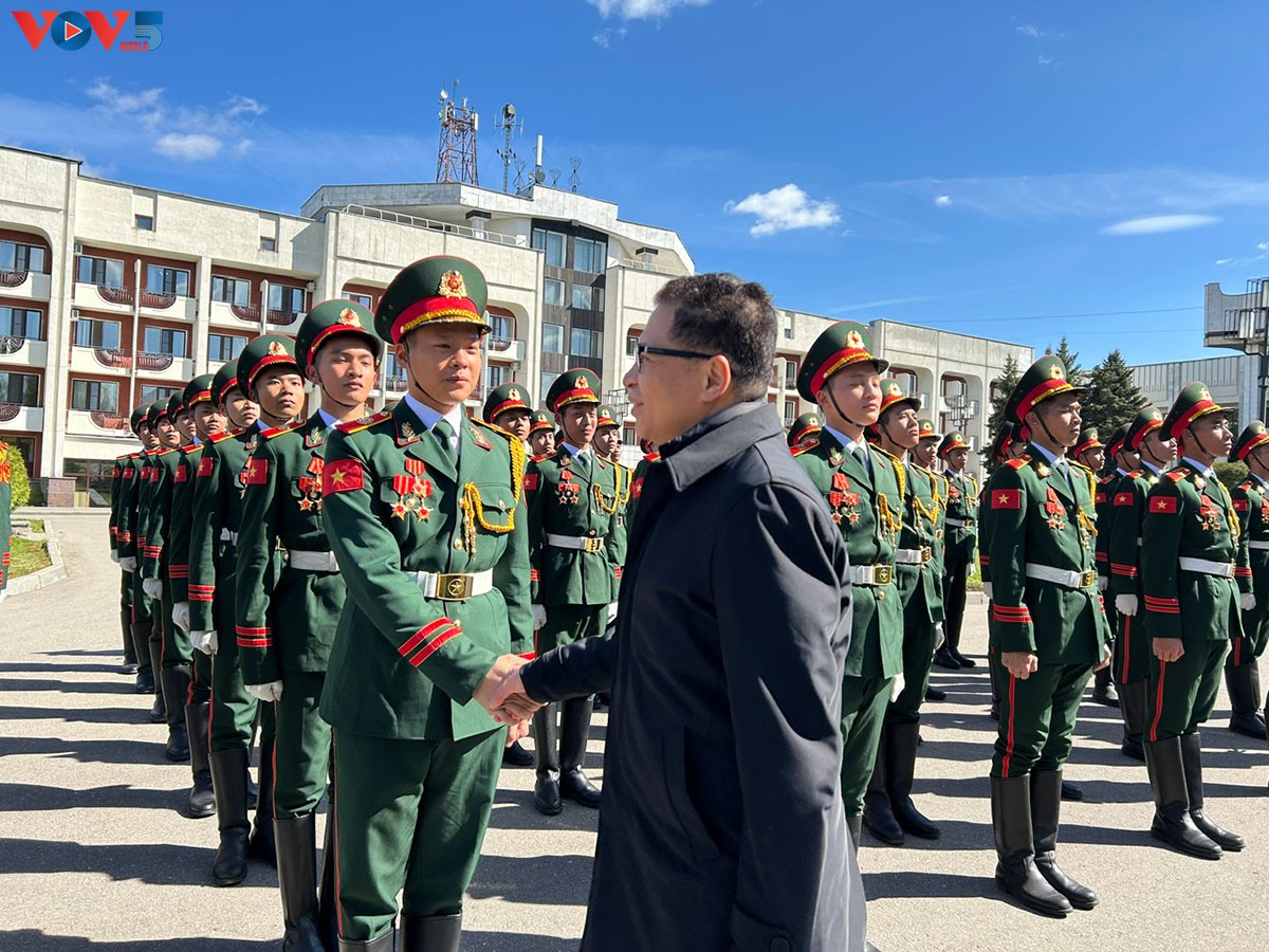 ダン・ミン・コイ大使が、赤の広場で行われる「対ナチス・ドイツ戦勝80周年記念パレード」に参加予定のベトナム人民軍の幹部・兵士を激励(写真:Thu Hà, Đặng Cường/VOV-Moscow)
