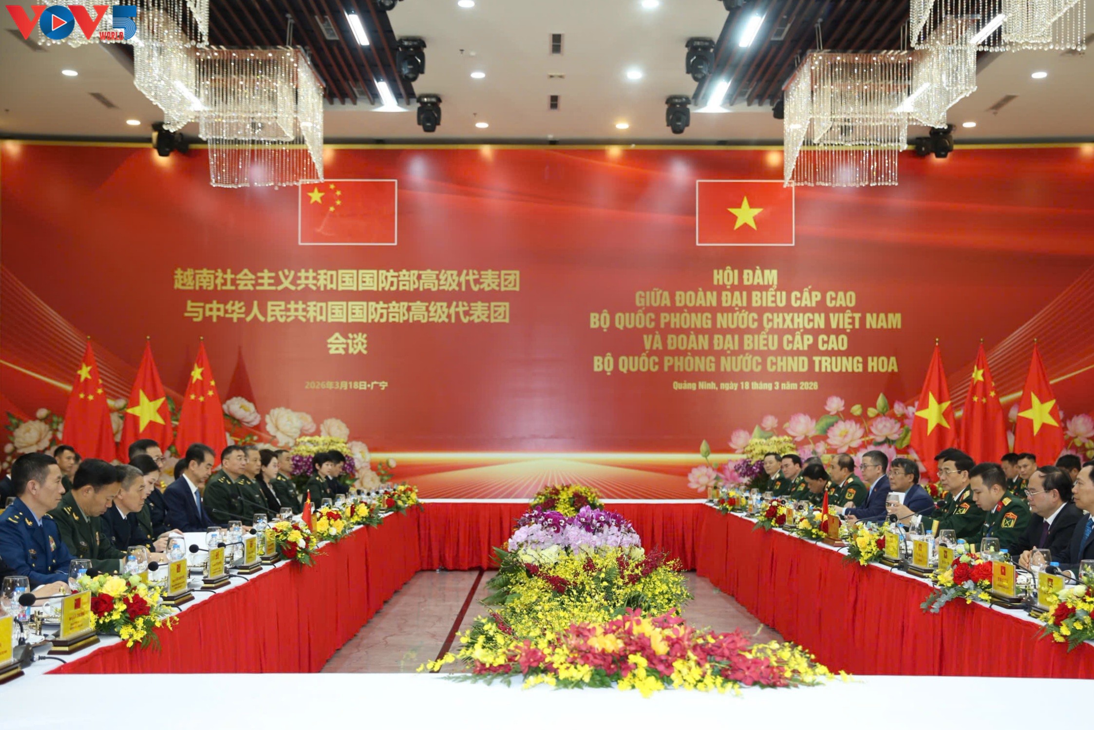 ベトナム国防大臣のファン・ヴァン・ザン大将と中国国防大臣の董軍上級中将は、18日午前、クアンニン省で会談を行い、両国の国防協力について意見を交わしました。