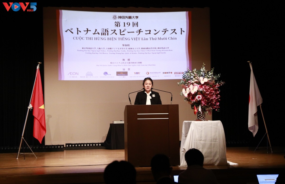 「本日のスピーチコンテストの目的は、ベトナム語を学んでいる学生たちに機会を提供することです。私たちは、学生の皆さんがベトナム語能力を高め、より効果的にコミュニケーションできるようになることを期待しています」