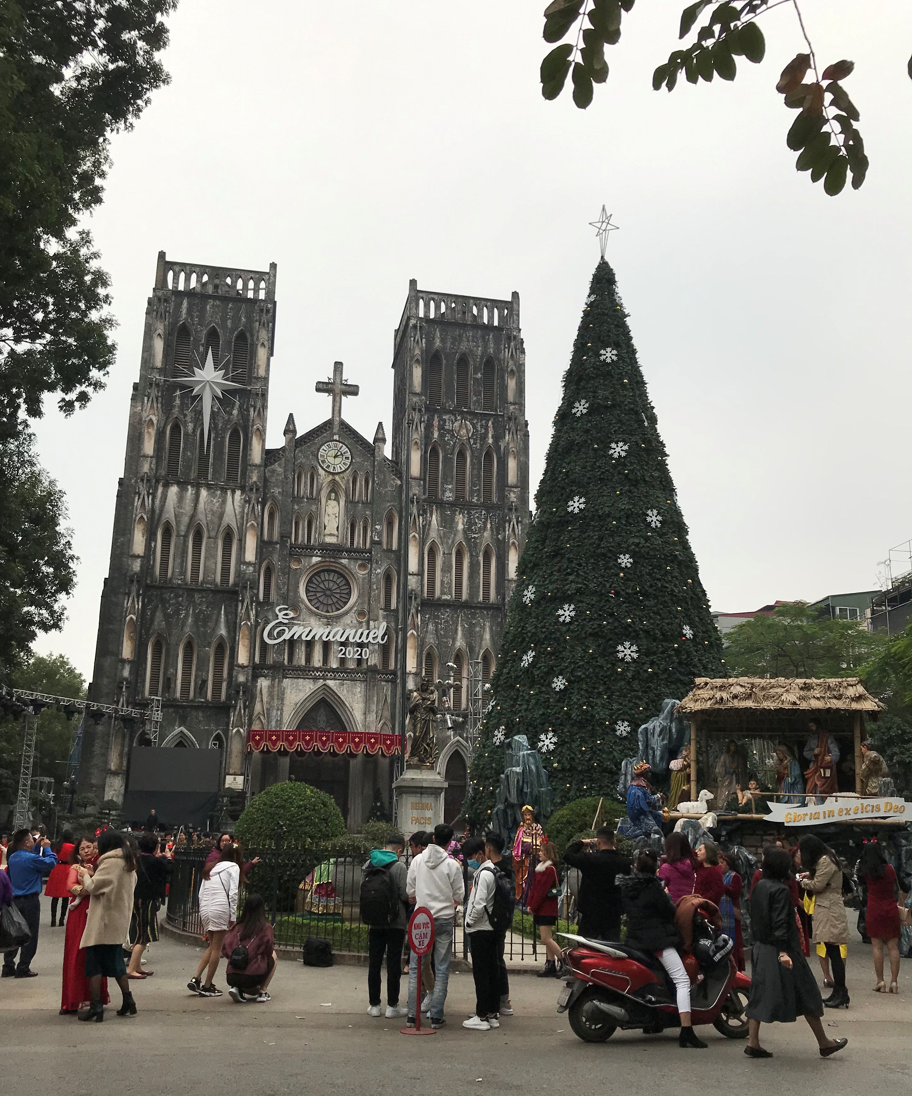 ソン こちらハノイ市内の教会や、ホテル、ショッピングセンター、高層マンション、大手レストランなどは、クリスマスツリーを置き、美しく飾っていますよ。