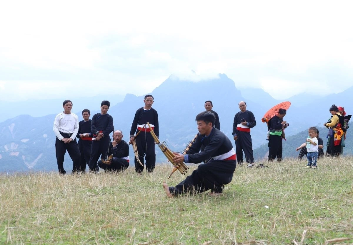 山岳地帯で披露されるモン族の横笛ケンの演奏(写真:Đình Châu/VOV2) |