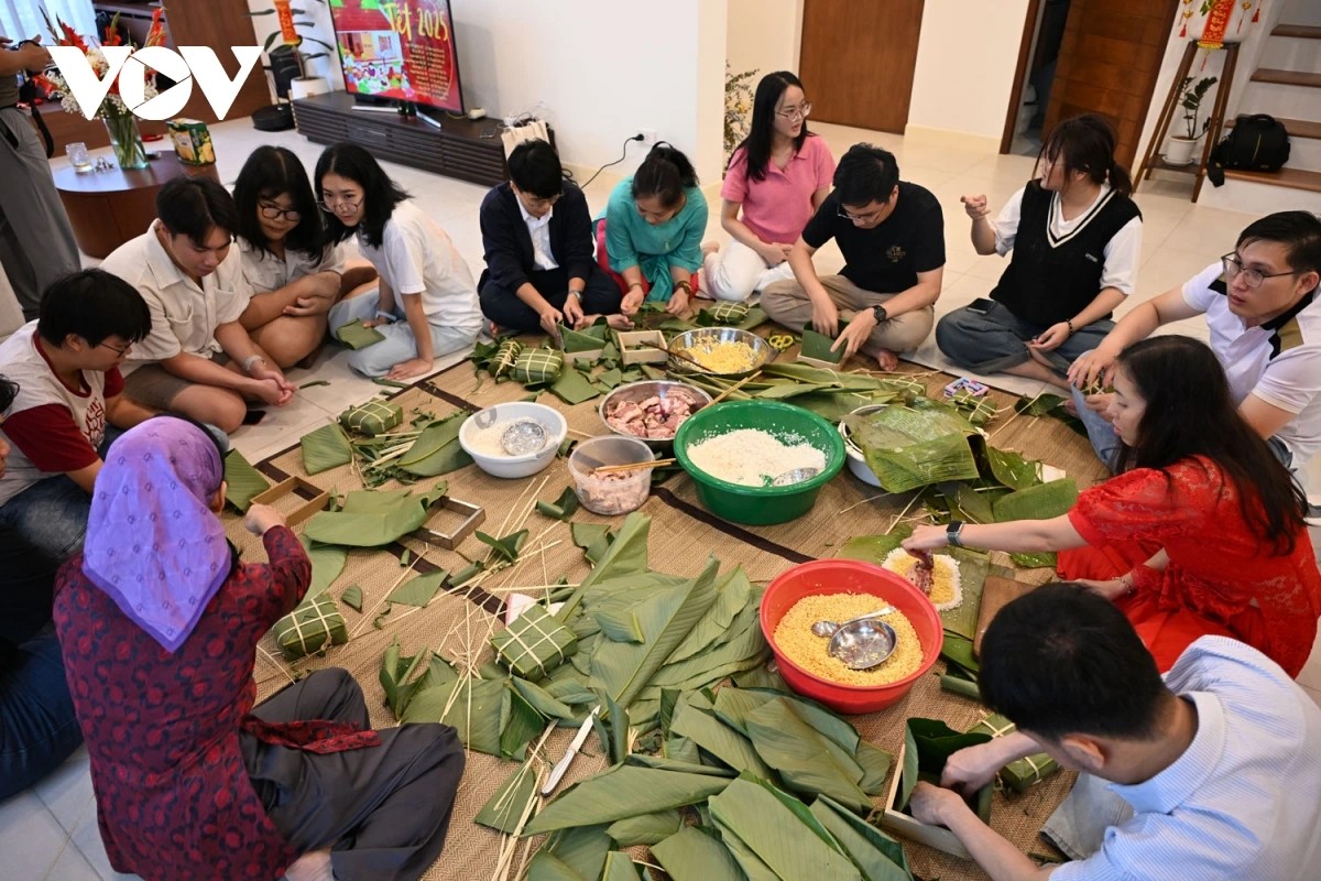 ベトナムの伝統的な旧正月に欠かせない、バインチュン作り(写真:Ngọc Diệp/VOV-Bangkok) |