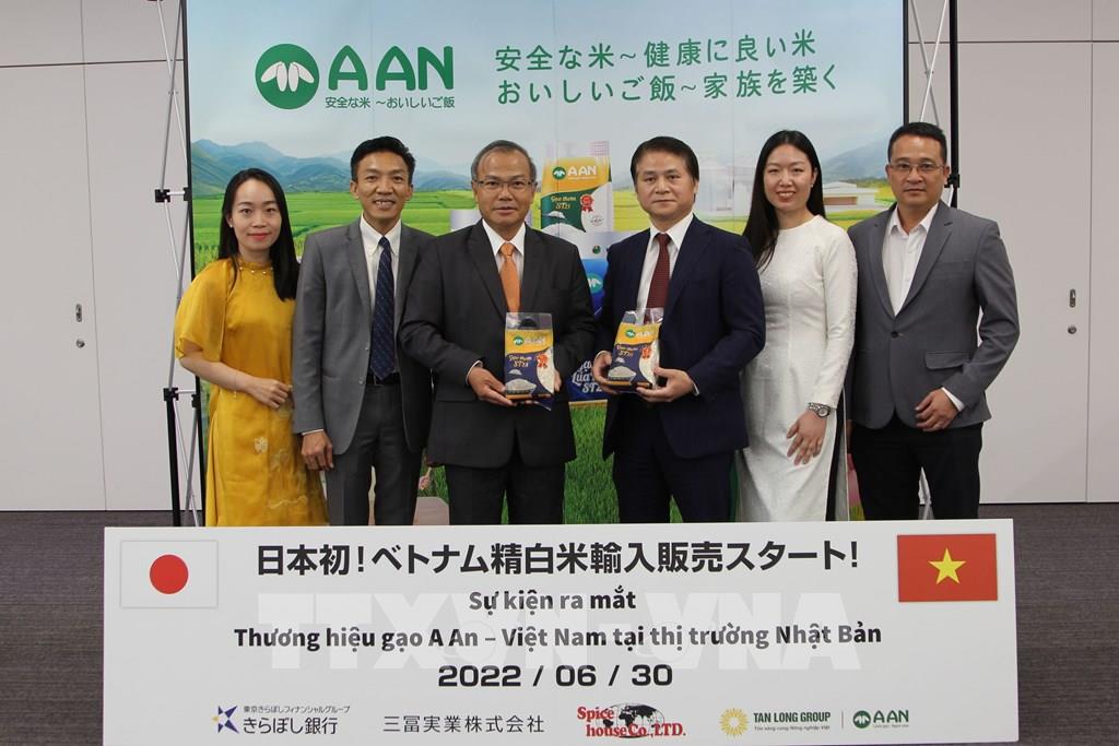 日本市場で輸入販売される最初のベトナム精白米製品であるA AnブランドのST25米の発売記念式典(写真:Đào Thanh Tùng/TTXVN)