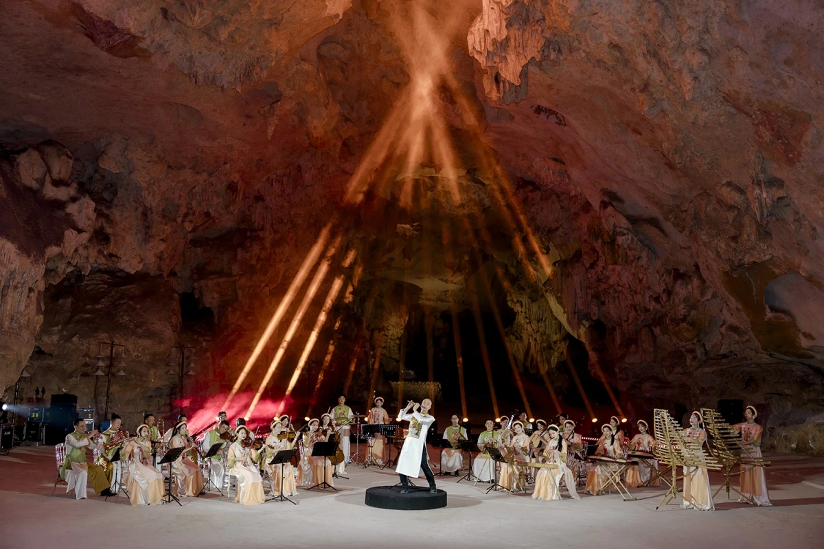 ハロン湾の1億5000万年前の鍾乳洞で披露された交響楽の演奏(写真:Thiếu Anh/VOV.VN) |