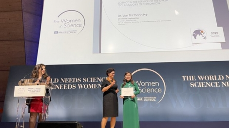 (VOVWORLD) - ដោយបានវ៉ាដាច់បេក្ខជនចំនួន ២៥០ នាក់លើទូទាំងពិភពលោក លោកស្រី សាស្ត្រាចារ្យរង បណ្ឌិត Ho Thi Thanh Van របស់វៀតណាម ទើបតែត្រូវបានក្រុម ប្រឹក្សាមេប្រយោគនៃពានរង្វាន់អ្នកវិទ្យាសាស្ត្រវ័យក្មេងដែលមានទេពកោសល្យ ពិភពលោក បោះឆ្នោតជ្រើសរើសអ្នកវិទ្យាសាស្ត្រគំរូមួយរូបក្នុងចំណោមអ្នកវិទ្យា សាស្ត្រស្ត្រីគំរូរបស់ពិភពលោកទាំង១៥រូប ក្នុងឆ្នាំ២០២២ ដោយមានសំណង់ ស្រាវជ្រាវអំពីថាមពលបៃតងនិងមានមេត្រីភាពបរិស្ថាន។ នេះជាមោទនភាពរបស់វៀតណាមក៏ដូចជារបស់អ្នកវិទ្យាសាស្ត្រស្ត្រីវៀតណាមផងដែរ។
