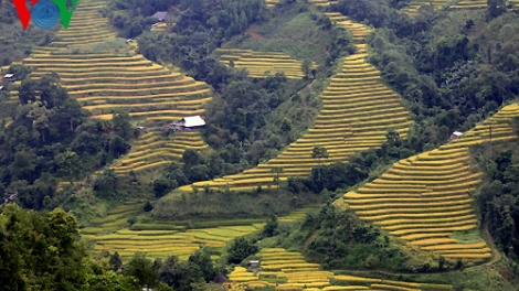 VOV.VN – វាលស្រែលកាំជណ្តើរនៅ Hoang Su Phi ខេត្ត Ha Giang ល្បីឈ្មោះពីយូមក ហើយដោយ រូបភាពលឿងឆ្អិនឆ្អៅក្នុងរដូវប្រមូលផល។