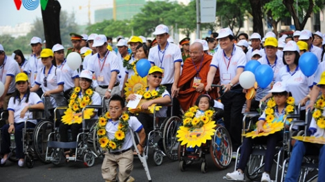 VOV.VN -​ ប្រធានរដ្ឋវៀតណាម លោក Truong Tan Sang រួមជាមួយប្រជាជនទីក្រុង ហូជីមិញចំនួន ៧ ពាន់ ៥ រយ នាក់បានចូលរួមការការធ្វើធម្មយាត្រាដើម្បី ជួយជ្រោមជ្រែង ទិវាជនពិការអន្តរជាតិ (ថ្ងៃទី ៣ ធ្នូ)។