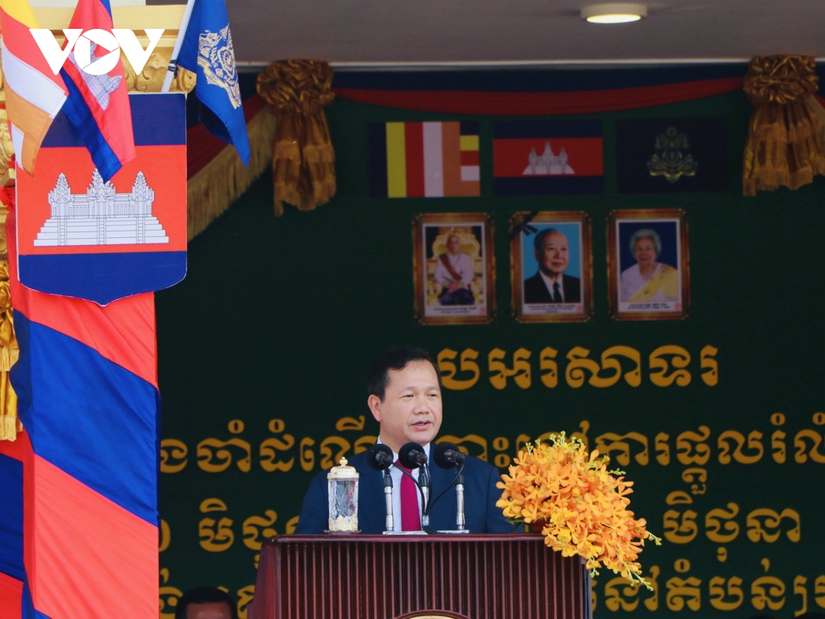 នាយករដ្ឋមន្ត្រីសម្តេចហ៊ុន ម៉ាណែត អញ្ជើញមានប្រសាសន៍ក្នុងកម្មវិធី (រូបថត៖ VOV) |