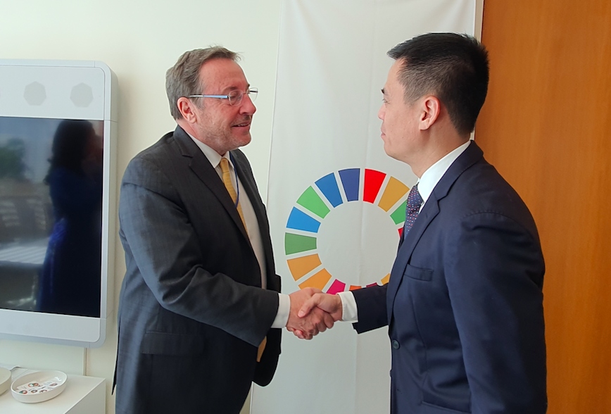ឯកអគ្គរដ្ឋទូត Dang Hoang Giang ប្រធានបេសកកម្មអចិន្ត្រៃយ៍វៀតណាមប្រចាំអង្គការសហប្រជាជាតិ និងអគ្គនាយក UNDP Achim Steiner រូបថត៖ PV/VOV-Washington