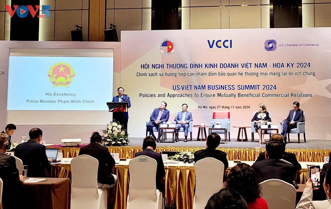 អញ្ជើញថ្លែងមតិនៅសន្និសីទនេះ នាយករដ្ឋមន្ត្រី លោក ហ្វាម មិញជីញ បានអះអាងថា ទំនាក់ទំនងវៀតណាម - អាមេរិកកំពុងអភិវឌ្ឍន៍យ៉ាងល្អប្រសើរ ក្នុងនោះមានការរួមចំណែករបស់អង្គភាពអាជីវកម្មនៃប្រទេសទាំងពីរផងដែរ។ លោកនាយករដ្ឋមន្ត្រីបានឲ្យដឹងថា៖ វៀតណាមកំពុងអនុវត្តន៍ភារកិច្ចសំខាន់ៗ ចំនួន៦ និងចំណុចលោតផ្លោះយុទ្ធសាស្ត្រចំនួន ៣ ដើម្បីប្រទេសវៀតណាមស្ទុះឈានទៅមុខក្នុងយុគសម័យថ្មី។ លោកនាយករដ្ឋមន្ត្រីបានសង្កត់ធ្ងន់ថា អង្គភាពអាជីវកម្មនៃប្រទេសទាំងពីរនឹងក្លាយជាប្រភពកម្លាំងដើម្បីស្វែងរកសក្តានុពលគ្មានដែនកំណត់នៃកិច្ចសហប្រតិបត្តិការវៀតណាម-អាមេរិក។