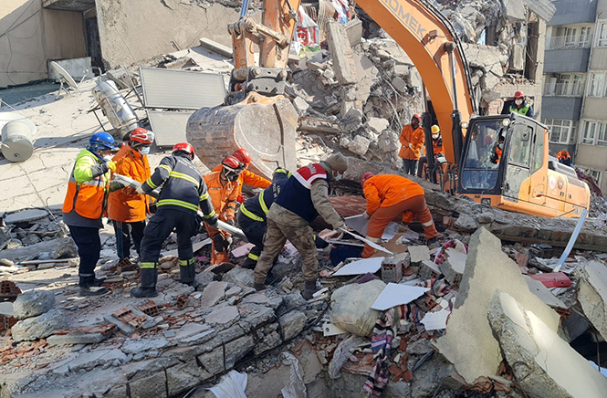 រីឯភាគីទួរគីវិញ ការងារជួយសង្គ្រោះកំពុងប្រព្រឹត្តទៅជាបន្ទាន់។ បុគ្គលិកជួយសង្គ្រោះជាង ៣២ ០០០នាក់ របស់ទួរគីកំពុងធ្វើការជីកគាស់កកាយតាមគំនរបាក់បែកយ៉ាងសកម្ម ដើម្បីស្វែងរកអ្នកនៅរស់រានមានជីវិត។ ប្រតិបត្តិការស្វែងរក និងជួយសង្គ្រោះក៏មានការចូលរួមរបស់បុគ្គលិកជួយសង្គ្រោះអន្តរជាតិប្រមាណ ៨ ៣០០ នាក់។