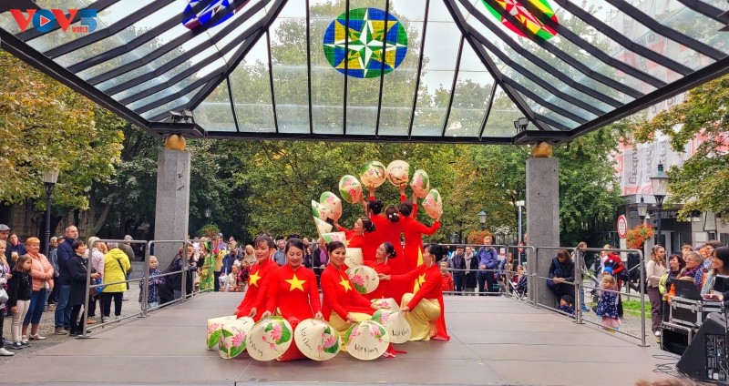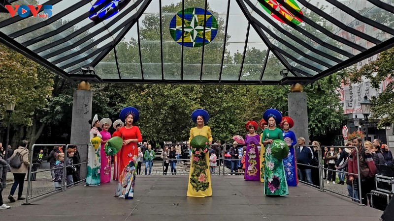 ការសម្តែង Ao Dai របស់វៀតណាម ជាមួយមិត្តអន្តរជាតិ។ (រូបភាព៖ VOV)