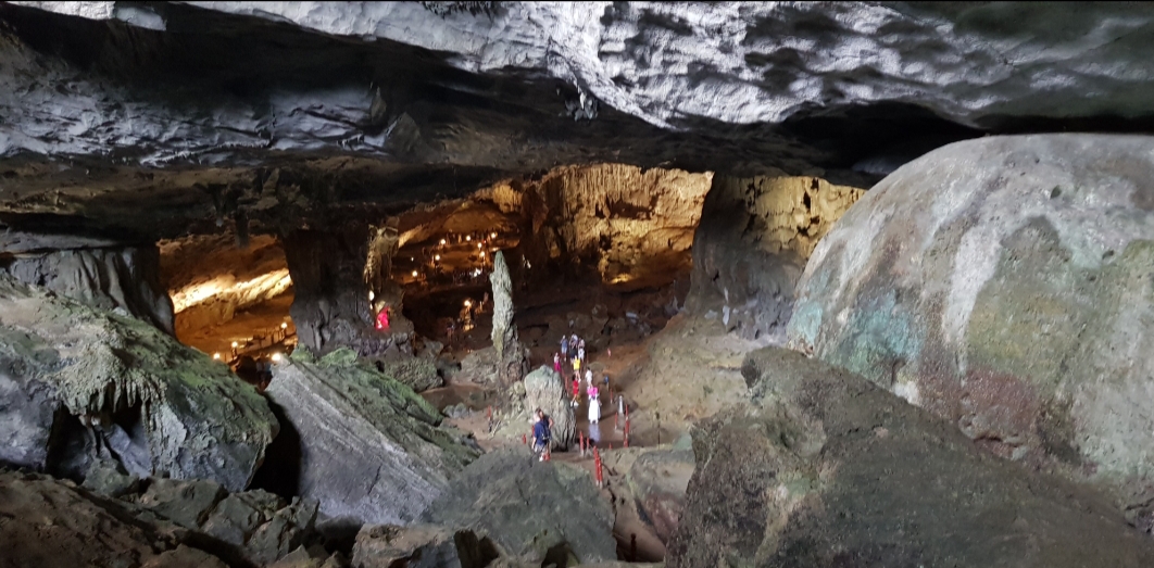 ភ្ញៀវទេសចរចូលទស្សនាល្អាងភ្នំ Sung Sot។ |