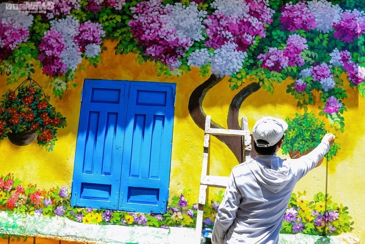 | វិថីគំនូរនេះទាក់ទាញភ្ញៀវទេសចរយ៉ាងច្រើនមកទស្សនា និងថតរូប។ (រូបថត៖ VTC) |