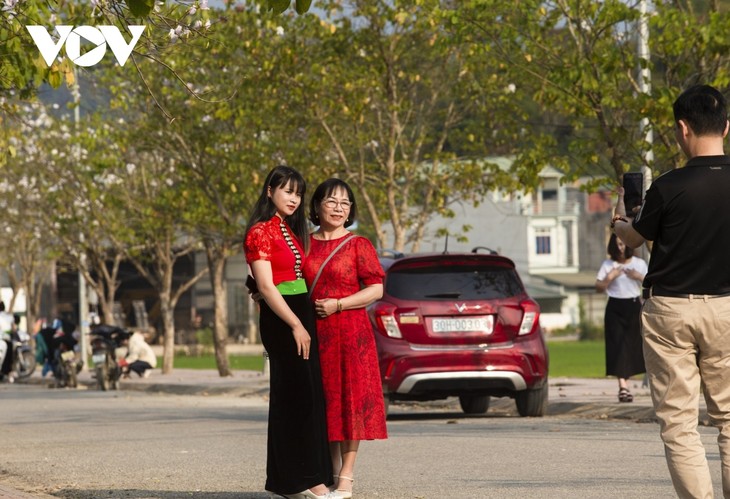 នៅតាមដងវិថីសំខាន់ៗ ក្នុងជួរដើមជើងគោ មិត្តយុវវ័យជាំច្រើនបានជ្រើសរើសសំលៀកបំពាក់ស្អាតៗ ដើម្បីថតរូប រក្សាពេលវេលាដ៏ស្រស់ស្អាតនាដើមនិទាឃរដូវ |