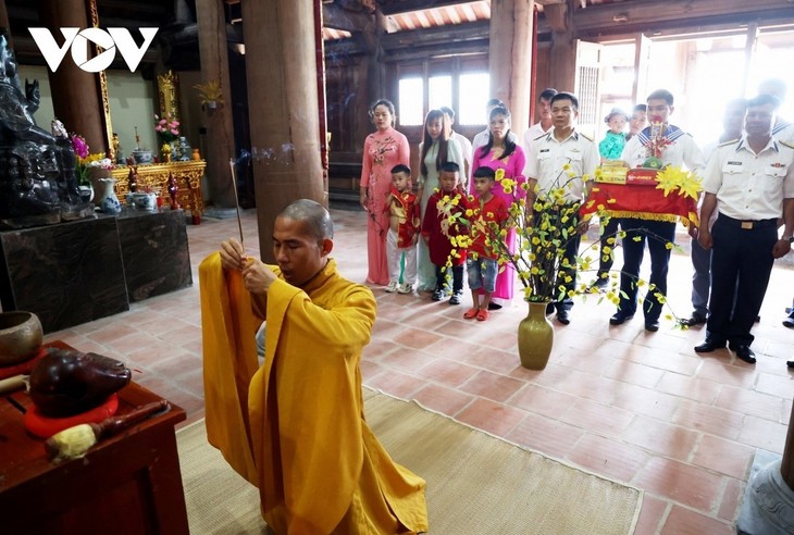 | ការទៅវត្តអារ៉ាម ដើម្បីបួងសួងសុំសុខភាពនិងសំណាងល្អសម្រាប់ខ្លួនឯង និងក្រុមគ្រួសារក្នុងប៉ុន្មានថ្ងៃដើមឆ្នាំ គឺជាលក្ខណៈវប្បធម៌ដ៏ល្អប្រពៃរបស់ជនជាតិវៀតណាមរាប់ពាន់ឆ្នាំមកហើយ។ រូបថត៖ Tuan Anh/VOV |