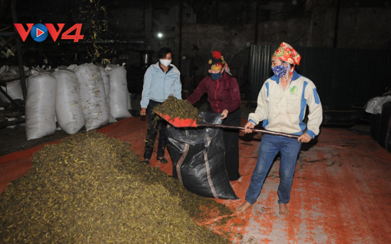 លោកស្រី Nguyen Thi Binh និងខ្សែសង្វាក់ផលិតកម្មតែ។ (រូបថត៖ VOV) |