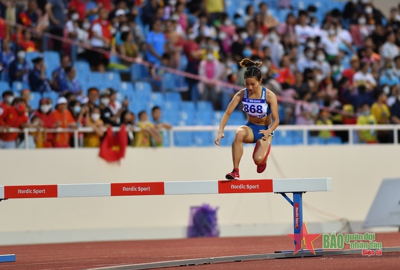 Nguyen Thi Oanh ប្រកួតក្នុងវិញ្ញាសាររត់ឆ្លងកាត់ឧបសគ្គចម្ងាយ ៣០០០ ម៉ែត្រ។ (រូបថត៖ qdnd.vn) |