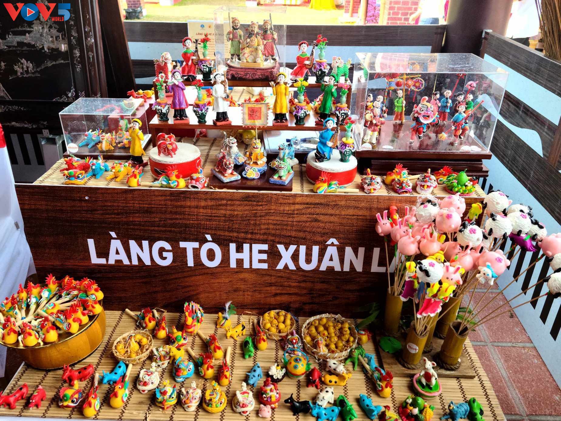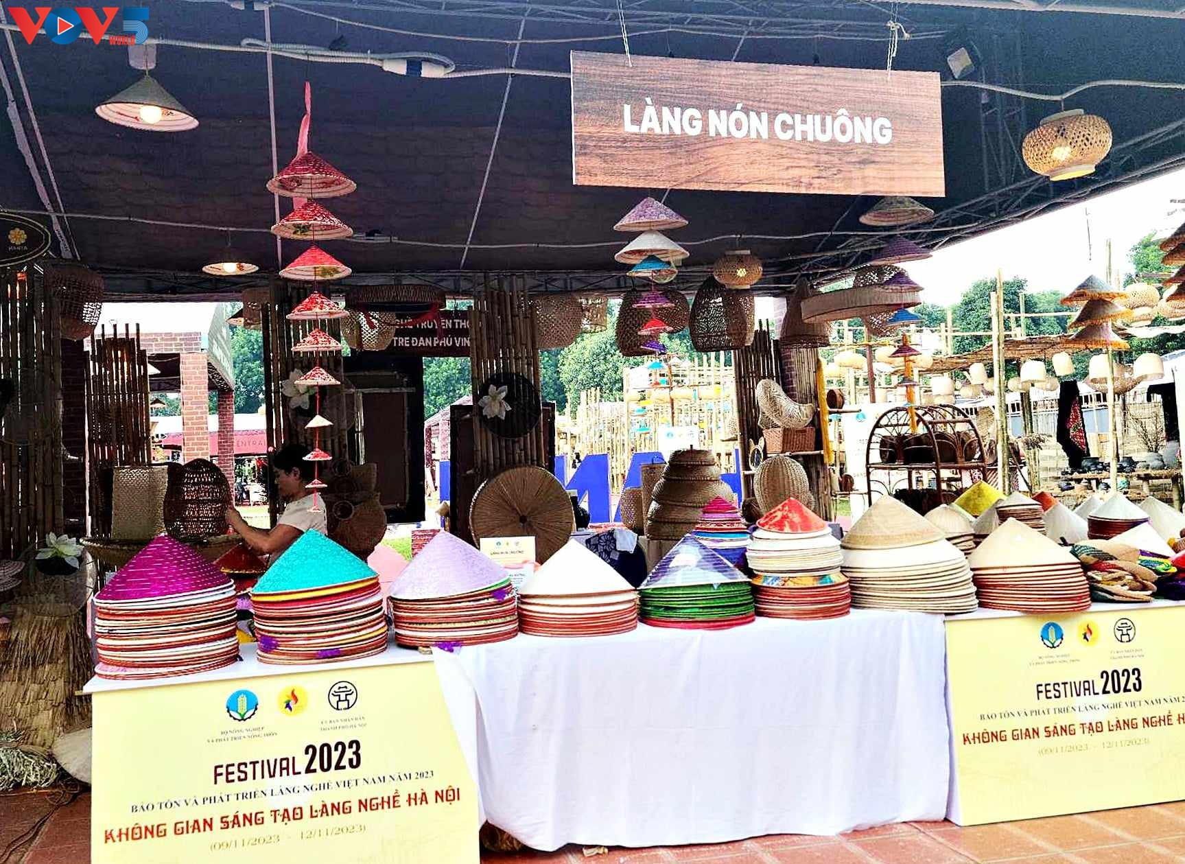 ផលិតផលសិប្បកម្មប្រពៃណីរបស់ភូមិសិប្បកម្មហាណូយដែលបានដាក់បង្ហាញក្នុងពិធីបុណ្យរួមមានៈ សេរ៉ាមិច Bat Trang, សូត្រ My Duc, ប៉ាក់ Thuong Tin, គ្រឿងសង្ហារិមឈើ Canh Nau, ឫស្សី ម្រ័ក្សណ៍ Ha Thai ជាដើម។ ក្នុងស្តង់នីមួយៗ ផលិតផលសិប្បកម្មវិចិត្រសិល្បៈប្រពៃណី ត្រូវបានដាក់តាំងបង្ហាញយ៉ាងរស់រវើក ជាមួយនឹងការរចនាដ៏សម្បូរបែប។ លោកស្រី Ta Thu Huong ម្ចាស់ស្តង់ដួន ភូមិ Chuong ឃុំ Phuong Trung ស្រុក Thanh Oai ទីក្រុងហាណូយ បានឲ្យដឹងថា៖ “យើងខ្ញុំបានឧទ្ទេសនាមនូវផលិតផលដួនភូមិ Chuong ជាផលិតផលសកម្មប្រពៃណីនៃភូមិកំណើតរបស់យើង។ មានគំរូផលិតផលប្រហែល ៣០ប្រភេទ ដូចជា៖ ដួនសូត្រ (ប្រភេទដួនពេញនិយមបំផុតនាពេលបច្ចុប្បន្ន) ដួនប្រពៃណី ឬផលិតផលប្លែកៗដូចជា៖ ដួនធ្វើពីស្លឹកឈូក ដួនធ្វើពីស្លឹកពោធិ និងគំរូដួនផ្សេងៗទៀត សម្រាប់ប្អូនៗកុមារជាដើម”។