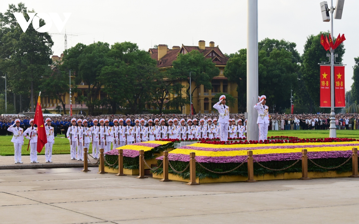ប្រជាជនរាប់ពាន់នាក់បានប្រមូលផ្ដុំនៅទីលាន Ba Dinh ដើម្បីទស្សនាពិធីបង្ហូតទង់ជាតិ នាព្រឹកថ្ងៃបុណ្យជាតិ ទី ២ កញ្ញា។ (រូបថត៖ VOV)