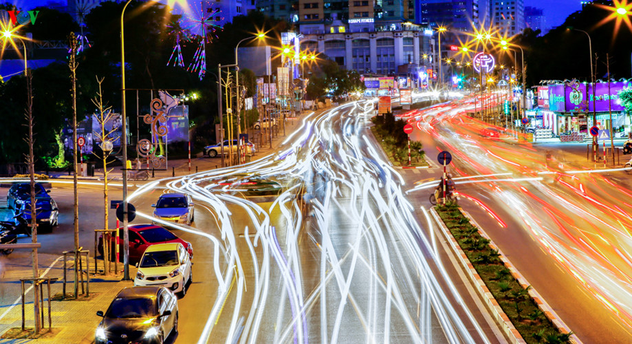 | ពេលដើរថ្មើជើងនៅជុំវិញបឹង Guom យើងអាចទស្សនាភ្លើង LED ចម្រុះពណ៍។ |