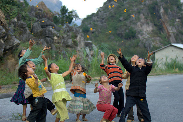 | កុមារៗនៅឃុំ Sủng Là លេងល្បែងបោះផ្កា |