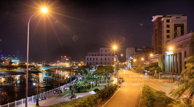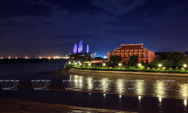 នាពេលទីក្រុងបំភ្លឺឡោះងនារាត្រី កំពុងផែ Bach Dang ភ្លឺចិញ្ចាចនិងអ៊ូអរជាង