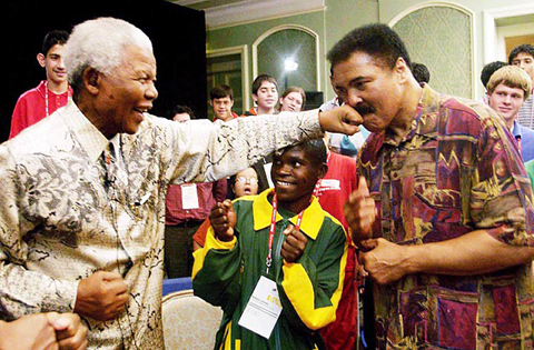 | លោក Nelson Mandela រួមជាមួយអតីតកីឡាករប្រដាល់ជើងឯកពិភពលោក Muhammad Ali នាឆ្នាំ ២០០៣។ (រូបថត៖ Reuters) |