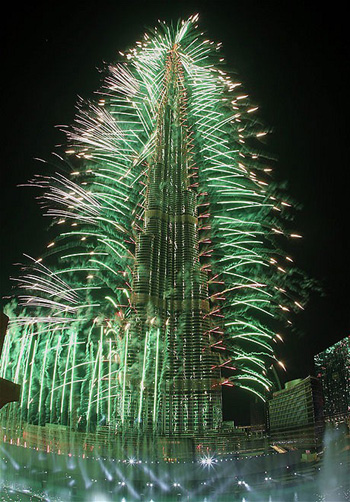 | ការបាញ់កាំជ្រួចផ្កានៅអាគារ Burj Khalifa នៅ Dubai។ |