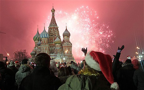 | ប្រជាជនរុស្ស៊ីទទួលឆ្នាំថ្មីនៅទីលានក្រហម (ទីក្រុងមូស្គូរ រុស្ស៊ី)។ |