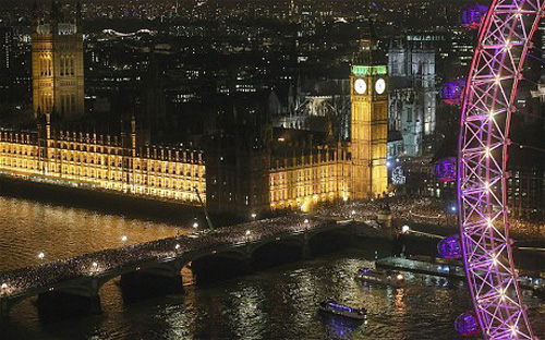 | ទ្រនចនាឡិកា Big Ben ចង្អួលនាទីចូលឆ្នាំថ្មី ២០១៣។ |