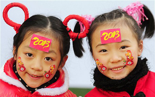 | សស្សិចំនួន ២ នាក់នៅខេត្ត Jiangxi (ចិន) ស្វាគមឆ្នាំថ្មី ២០១៣។ |