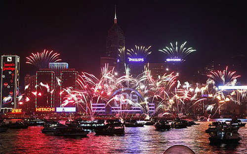 ទីក្រុងធំៗនៅទី្វបអាស៊ីជាច្រើនក៏បានទទួលឆ្នាំថ្មី ដោយបណ្ដាការសម្តែងបាញ់កាំជ្រួច