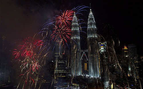 | អាគារ Petronas (ម៉ាឡេស៊ី) ក្នុងការបាញ់កាំជ្រួចផ្កា។ |