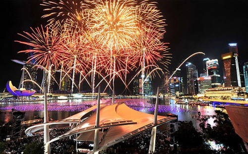 | ការបាញ់កាំជ្រួចផ្កានៅកំពង់ផែ Marina សឹង្ហបុរី។ |