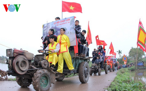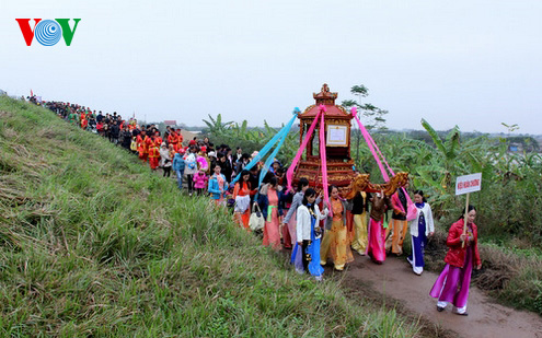 ពិជីដង្ហែអាសនះពីភូមិចំនួន៣ ទៅកាន់ភូមិ Duyen Yetចូលរួមពិធីបុណ្យ។