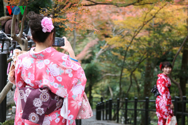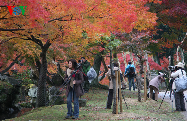 | ការថតរូបនៅរដូវស្លឹកឈើក្រហមគឺជាការចូលចិត្តរបស់ជនជប៉ុនជាច្រើន។ |