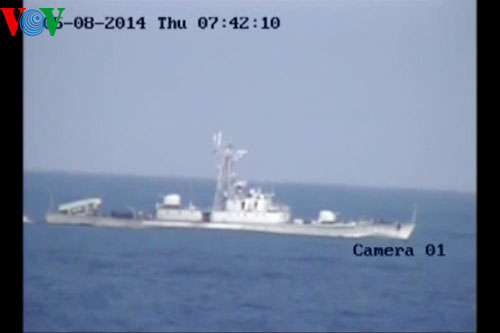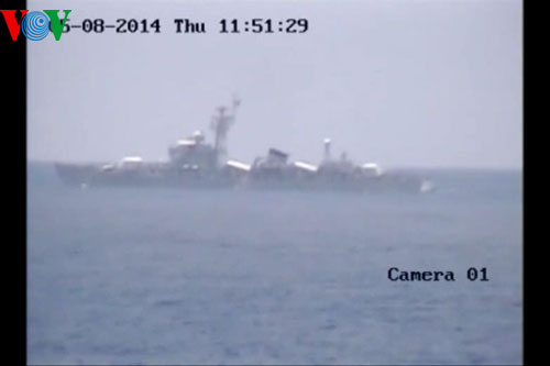 | នាវារបស់ចិនបានប្រើបំណង់បាញ់ទឹកទៅលើនាវាការពារសមុទ្ររបស់វៀតណាម។ |