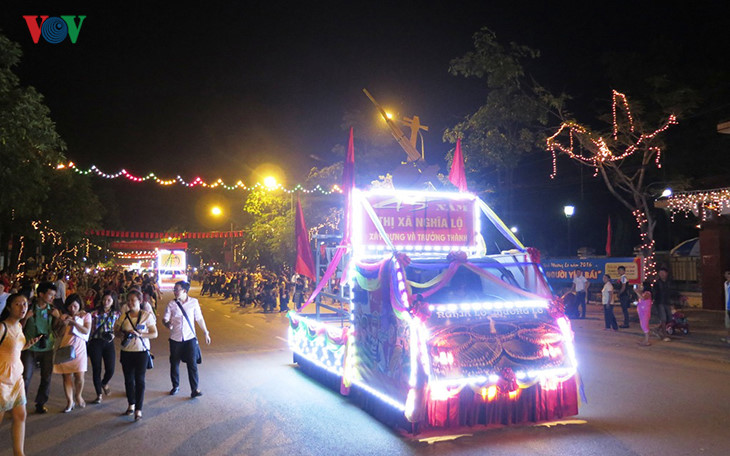 ចាប់ផ្ដើមពិធីប្រារព្ធគឺកម្មវិធី ដង្ហែក្បួនក្រោមប្រធានបទ “វិថីពាយ័ព្យចម្រុះ ពណ៌”។ទៅមុខគេគឺរថយន្តមានឃ្លា “៤៥ឆ្នាំទីរួមស្រុក Nghia Loចាប់បដិសន្ធិ និងរីកធំធាត់”។