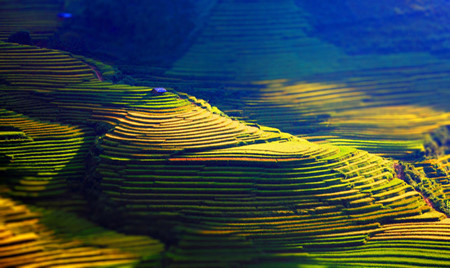 | វាលស្រែកាំជណ្ដើរក្នុងពន្លឺព្រះអាទិត្យពេលព្រឹកព្រលឹម |