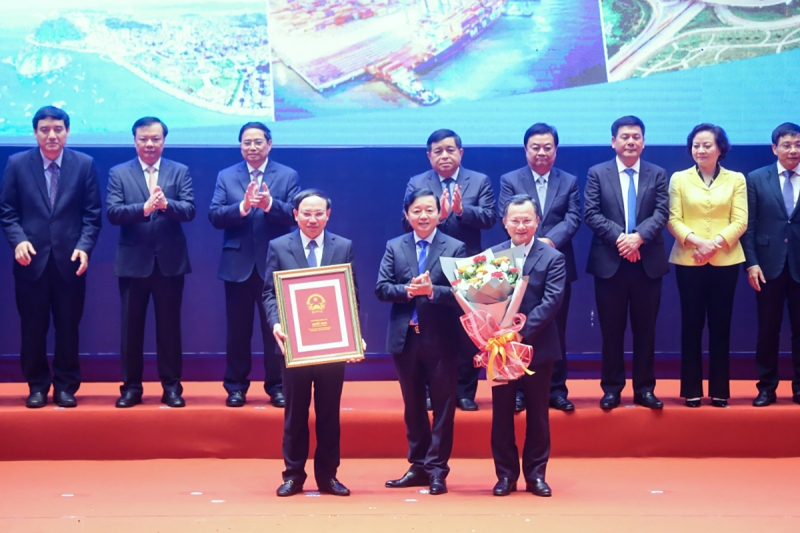 ឧបនាយករដ្ឋមន្ត្រី Tran Hong Ha ប្រគល់សេចក្តីសម្រេចអនុម័តិលើផែនការមេខេត្ត Quang Ninh ដំណាក់កាល ២០២១-២០៣០ ចក្ខុវិស័យដល់ឆ្នាំ ២០៤៥ ដល់ថ្នាក់ដឹកនាំខេត្ត Quang Ninh។ (រូបថត៖ VOV) |