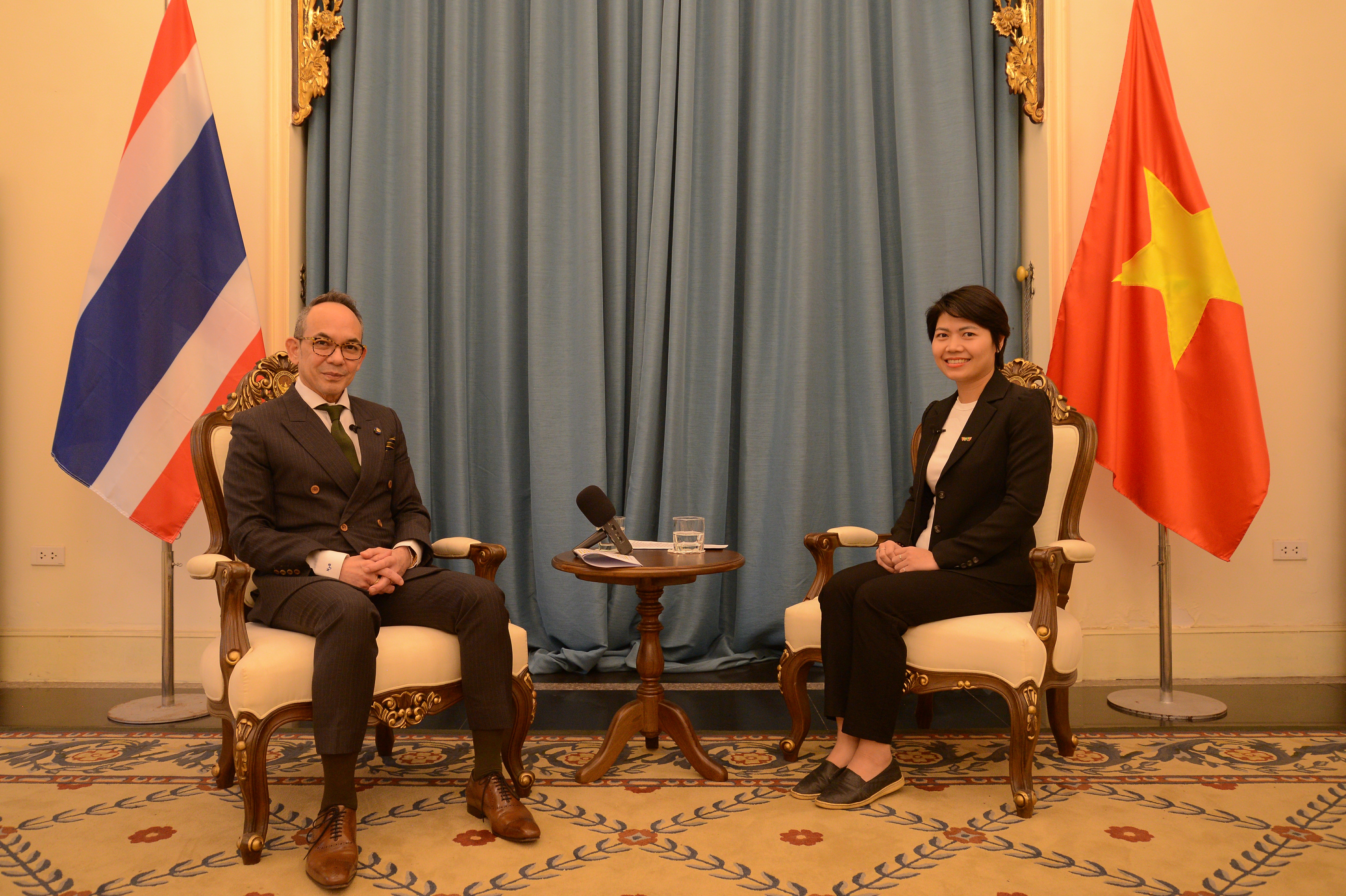 លោក Nikorndej Balankura ឯកអគ្គរាជទូតវិសាមញ្ញនិងពេញសមត្ថភាពនៃព្រះរាជាណាចក្រថៃប្រចាំនៅវៀតណាមក្នុងកិច្ចសម្ភាសន៍ជាមួយអ្នកយកព័ត៌មាននៃ VOV៥។