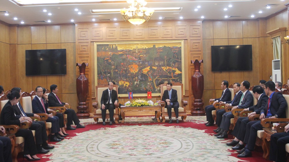 ទិដ្ឋភាពនៅជំនួបធ្វើការរវាងថ្នាក់ដឹកនាំខេត្ត Bac Giang ជាមួយលោក ហ៊ុន ម៉ានី សមាជិកគណៈកម្មាធិការកណ្ដាលគណបក្សប្រជាជនកម្ពុជានិងជា ប្រធានសហភាពសហព័ន្ធយុវជនកម្ពុជា។ (រូបថត៖ baobacgiang) |