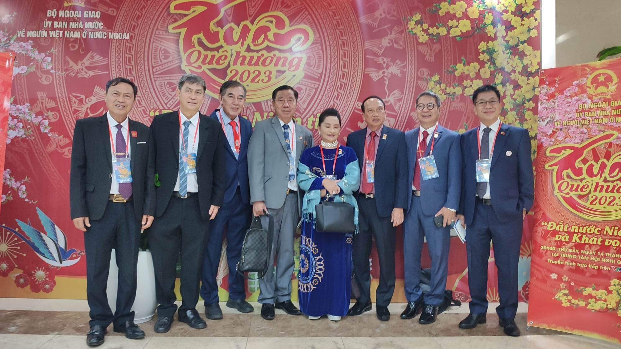 លោក Pham Van Hung (ខាងឆ្វេងបំផុត) - នាយករោងចក្រដែកថែប Khamhung Xaychalern និងបណ្ដអាណិកជនវៀតណាមជាគំរូក្នុងឱកាសវិលត្រឡប់មកប្រទេសវិញដើម្បីចូលរួមកម្មវិធី "និទាឃរដូវស្រុកកំណើត" ឆ្នាំ២០២៣។